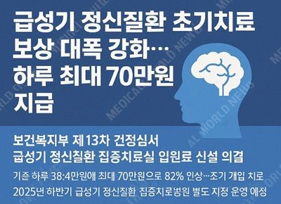 보건복지부가 24일 제13차 건강보험정책심의위원회에서 급성기 정신질환자 초기치료에 대한 보상을 대폭 강화하는 방안을 의결했다.