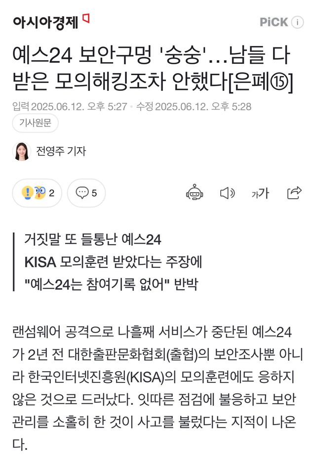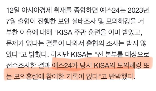 또, 이번 해킹 때도 Yes24는 kisa와 협력하여 복구 작업 중이라고 했지만 그마저도 구라였음. ㄷㄷ