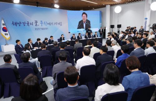 특히 해양수산부 부산 이전과 관련해선 “이전하겠다는 약속은 지켜야 한다”며 “해사법원 설립과 동남권투자은행도 최대한 신속하게 추진하겠다”고 말했다. 전재수 해수부 장관이 “연내 이사 가능하다”고 답하자 청중들로부터 큰 박수가 쏟아지기도 했다.