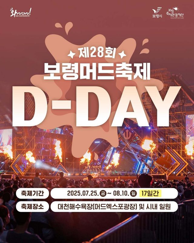 제28회 '보령머드축제'가 7월 25일부터 8월 10일까지 대천해수욕장 및 시내 일원에서 개최된다. / 보령축제관광재단 인스타그램