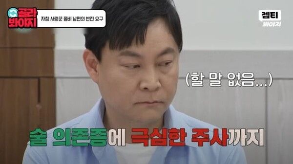 이후 조정 절차에서 남편 측은 상담 내용대로 이혼 조건을 말했다. 아내 측 변호사는 "(빚 나누는 비율이) 10대 0인 걸 잘못들은 줄 알았다"며 "남편이 경제활동도 안 하고 주사도 심해 유책 사유가 명확하기 때문에 빚도 100% 남편이 부담하는 게 맞다"고 말했다.