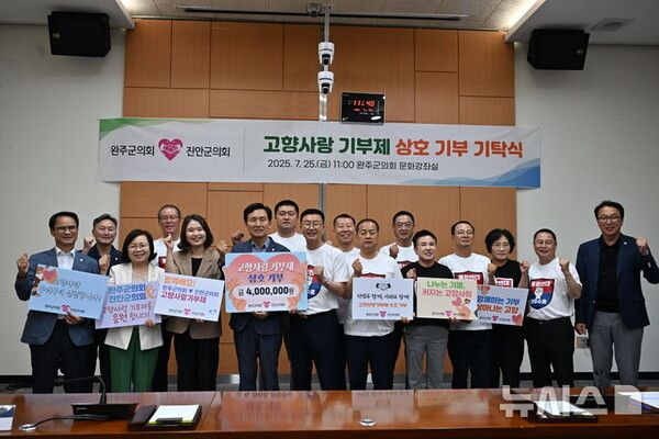 유의식 의장은 "이번 상호 기부는 지역 간 정서적 연대와 가치를 실천한 상징적인 계기"라며 "고향사랑기부제가 지역경제에 활력을 불어넣을 수 있도록 완주군의회가 앞장서며 제도 활성화에 힘을 보태겠다"고 강조했다.