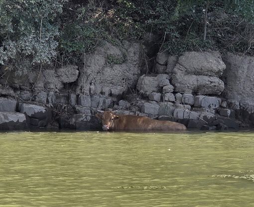 소 무게 때문에 배로 구조하는 것은 힘들다고 판단한 당국은 소머리 뿔에 끈을 맨 뒤 소가 헤엄쳐 밖으로 나오게 유도해 구조했다.