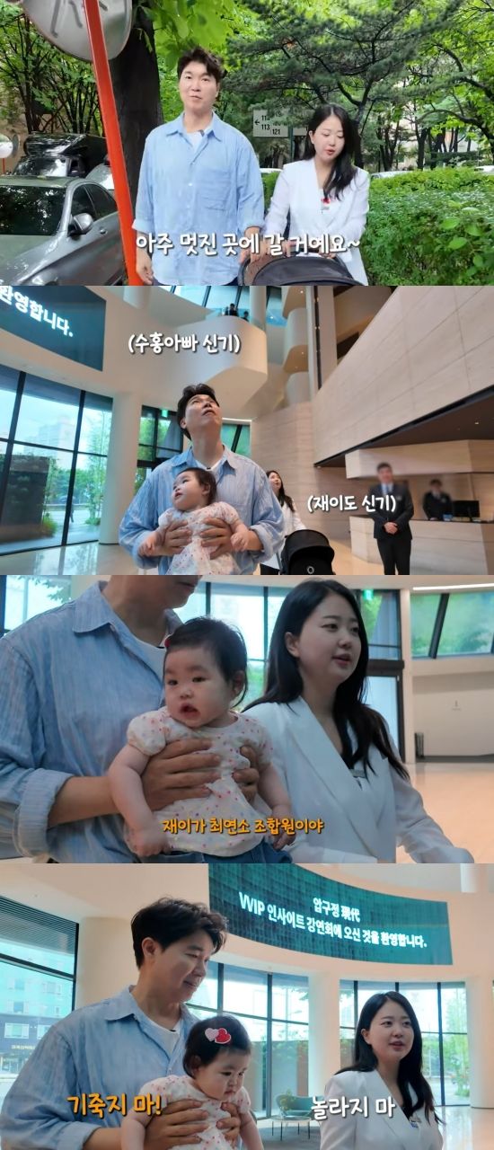 본격적인 구경에 앞서 박수홍이 "우리 재이가 최연소 조합원이야"라고 말하자, 김다예는 "(재건축) 시공사를 앞두고 어떤지 보러 왔다"라고 딸에게 설명했다.