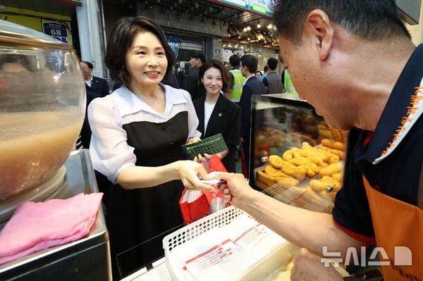 뉴시스 보도에 따르면, 김 여사는 이날 오후 인천 계양산전통시장을 찾아 민생회복 소비쿠폰 카드로 장을 봤다.