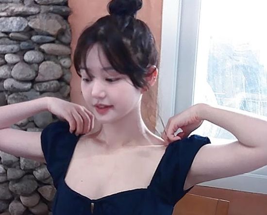 이어진 사진에서 이유비는 올라간 옷을 정리하는 듯 양팔을 올리고 있다. 가녀린 어깨 라인과 완벽한 쇄골 라인이 눈에 띈다. 짙은 남색의 상의가 그녀와 잘 어울린다.