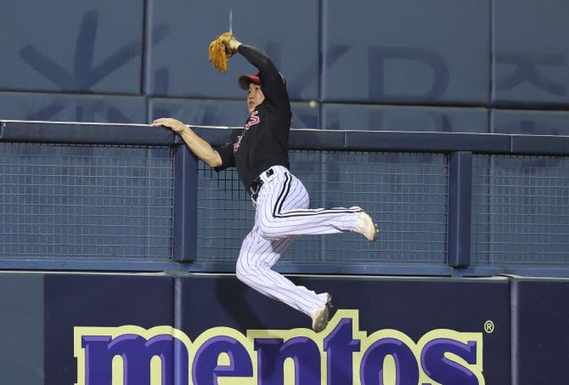 LG는 2점 차 리드를 잡은 9회말 마무리 유영찬을 올려 경기를 끝내려 했다. 유영찬도 불안했다. 볼넷, 안타, 폭투로 1점을 내주고 역전 위기에 몰렸다. 하지만 2사 1, 2루 역전 위기에서 이유찬의 파울플라이 타구를 3루수 구본혁이 펜스를 올라타고 난간을 잡은 채 캐치하면서 극적으로 승리를 지켰다. 경기를 끝낸 슈퍼캐치였다.
