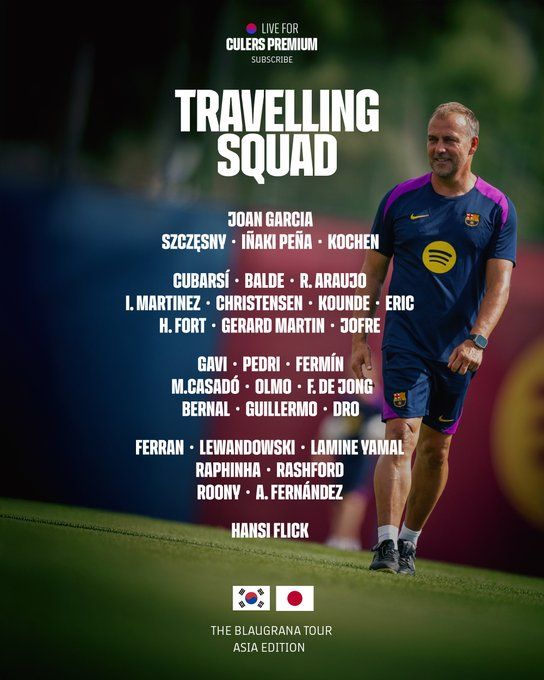 (엑스포츠뉴스 윤준석 기자) 스페인 명문 FC 바르셀로나가 2025-2026시즌을 앞두고 아시아 투어를 위한 30인 선수 명단을 공식 발표했다.