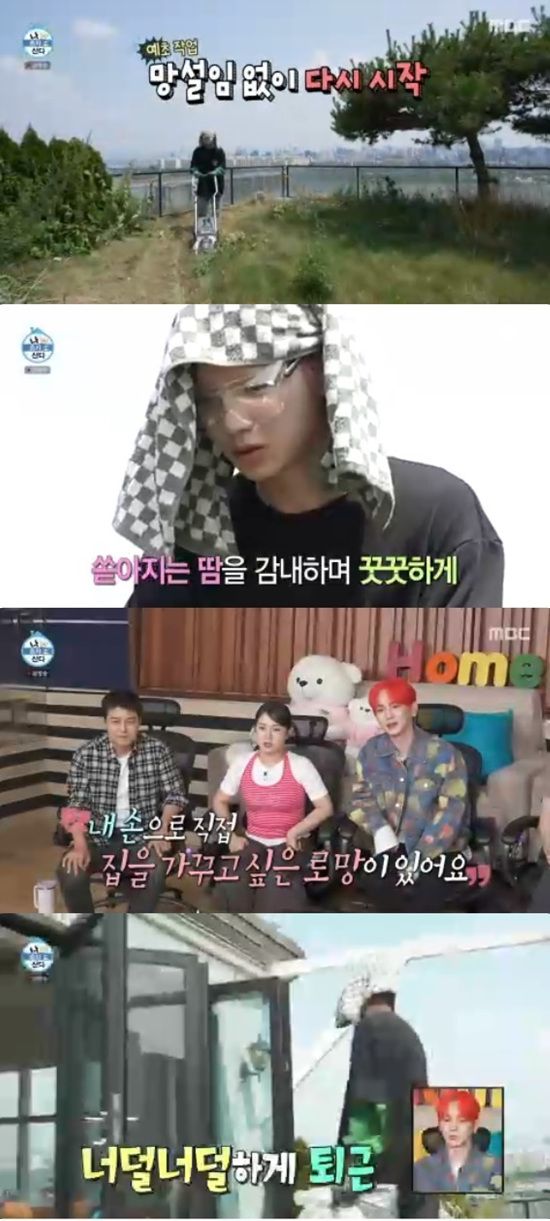 키는 테라스에서 지인들을 위한 여름 야장을 열고 싶은 마음에 예초 작업을 이어갔지만 땀이 뚝뚝 떨어지는 무더위에 힘들어 했다.