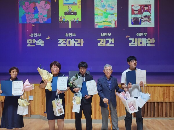 제주도농아복지관(관장 문성은)이 운영 중인 2025 장애인 웹툰 아카데미 '제농복 클라쓰' 참여자가 서귀포시장애인종합복지관 주최의 ‘2025 제주장애인 미술공모전 – 꿈나래’에서 사회복지법인 춘강 이사장상을 수상했다.