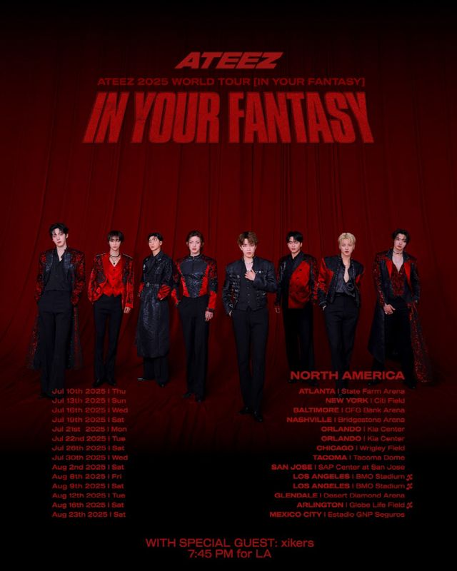 소속사 KQ엔터테인먼트는 지난 25일 오후 11시 사회관계망서비스(SNS)를 통해 ‘에이티즈 2025 월드투어 인 유어 판타지’(ATEEZ 2025 WORLD TOUR ‘IN YOUR FANTASY’) 북미 투어 일정이 담긴 포스터를 공개하고 싸이커스의 출격 소식을 알렸다.