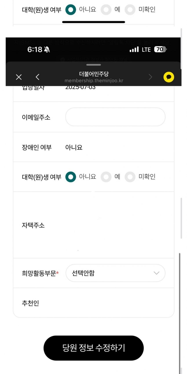 나도모르게 민주당에 가입당할수있음...