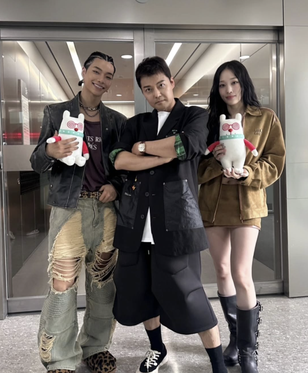 공개된 사진 속 전현무는 올데이 프로젝트 멤버 타잔, 애니와 만나 기념 사진을 찍었다.타잔과 애니는 MBC 예능 ‘전지적 참견 시점’ 인형을 들고 있는 가운데 전현무는 도발적인 눈빛과 당당한 포즈로 눈길을 끌었다.