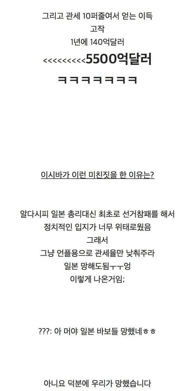 여시에서 말하는 일본이 관세협상 말아먹고 한국까지 ㅈ되게 만든 이유