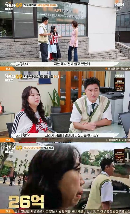 부동산을 나와 송경아의 집으로 향하던 중, 이들은 용산의 여러 집들을 보며 얼마일까 궁금해 했다. 한 곳이 '26억'이라는 답을 들은 홍현희는 "부동산 시장이 언제 꺼지는 거냐. 젊은 청춘들은 허무하다"고 이야기했다.
