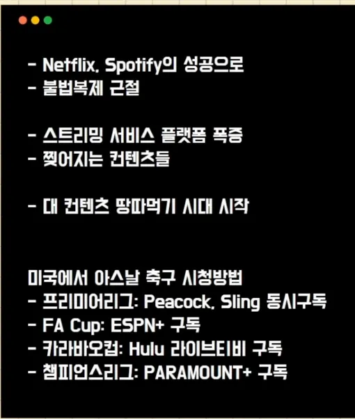 : 미국에서 프로경기 보러면 완전게 많은 스트리밍 라이브를 봐야함.