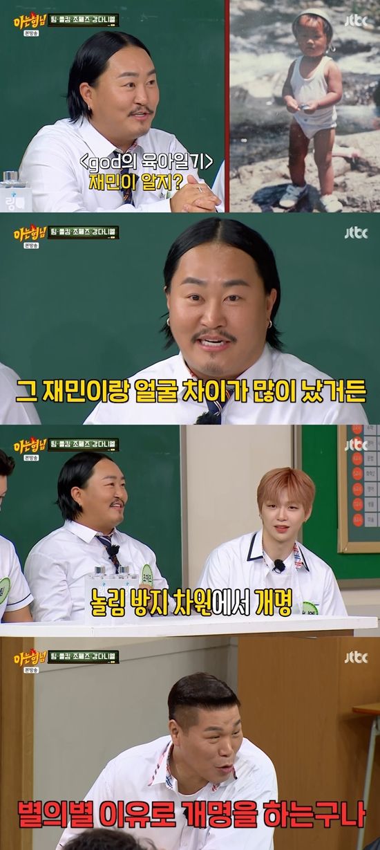 조째즈는 "원래 이름이 조재민이었다. 너희도 알겠지만 옛날에 'god의 육아일기' 재민이가 있었다. 그 재민이랑 이 재민이랑 얼굴이 많이 차이 난다. 많은 놀림을 당할 것 같아서 어머니께서 바꿔주셨다"라고 밝혔다. 서장훈이 "별별 이유로 개명을 하는구나"라고 말하자, 조째즈는 "그럼. 어린 시절에는 그게 상처가 될 수 있다"라고 설명했다.