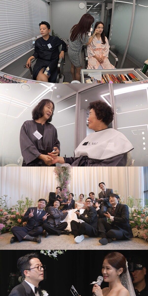 이날 방송에서는 결혼식 당일 아침부터 메이크업 숍에서 분주히 준비하는 김준호와 김지민의 모습이 그려진다. 두 사람은 무려 1,200명의 하객이 참석하는 대규모 결혼식을 앞두고 잔뜩 긴장한 모습. 특히 지인들의 잇따른 불참 소식에 당황하는 두 사람의 모습은 리얼한 현장감을 더하며 안방극장에 짠한 웃음을 전한다.