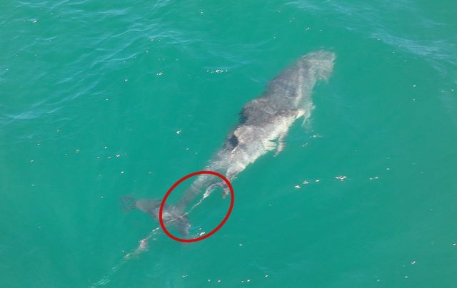 27일 다큐제주에 따르면 전날 오후 1시50분쯤 제주시 구좌읍 종달리 해상에서 꼬리지느러미에 낚싯줄이 걸린 새끼 남방큰돌고래가 포착됐다.