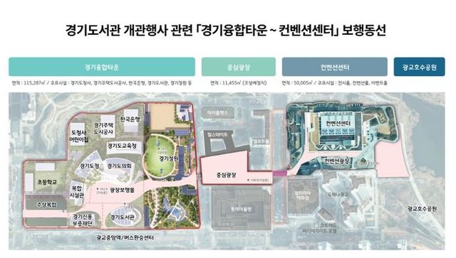 도는 행사 기간 중 방문객 안전과 편의를 고려해 환경 정비 사업을 추진했다고 설명했다. 경기융합타운과 수원컨벤션센터는 400m 정도 거리를 두고 있다.