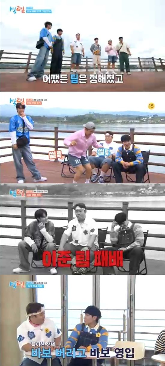멤버들은 이준이 있는 이준 팀과 이준이 없는 노준 팀으로 나뉘었다.