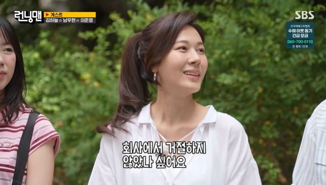 지석진이 "연예인 보는 것 같다"면서 "그동안 거절하신 거냐"고 묻자 김하늘은 "회사에서 거절하지 않았나 싶다"고 답했다.