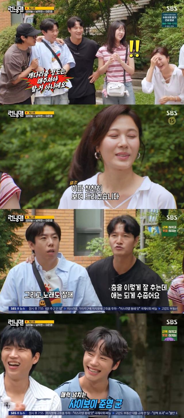 하하가 "진짜 너무 멋있는 거 아니냐"고 하자 김종국은 "춤을 이렇게 잘 추는데 애는 되게 수줍다"고 말했고, 양세찬도 "노래도 잘한다. 다 가졌다"고 칭찬하자 이준영은 다시 수줍은 모습으로 돌아와 감사 인사를 전했다.
