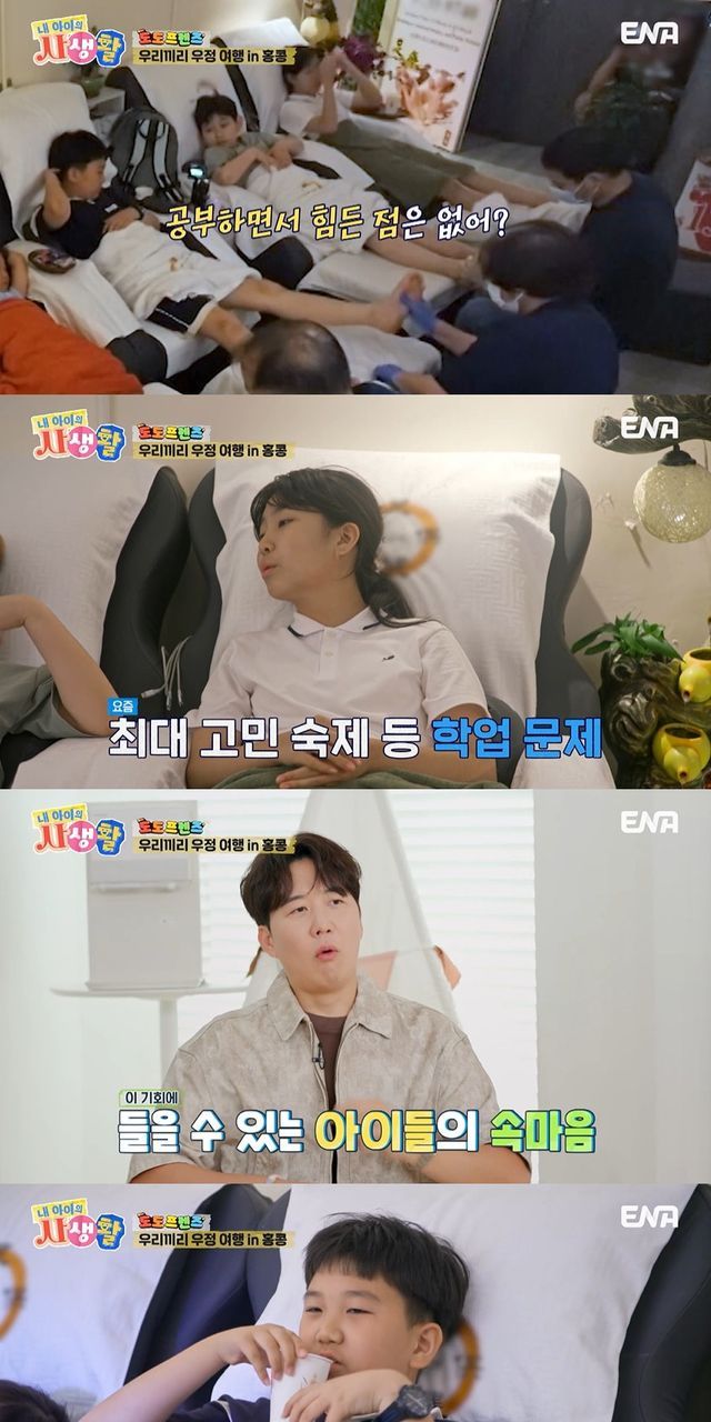 이날 아이들은 홍콩에 위치한 마사지 가게를 찾아 발 마사지와 귀지 케어를 받았다.
