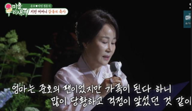 그는 “어느 날 네가 준호와 결혼을 전제로 만나는 데 ‘엄마가 반대하면 안 만날거야’라고 했을 때 엄마는 준호의 팬이었지만 가족이 된다니 많이 당황하고 걱정이 앞섰다”고 말했다.