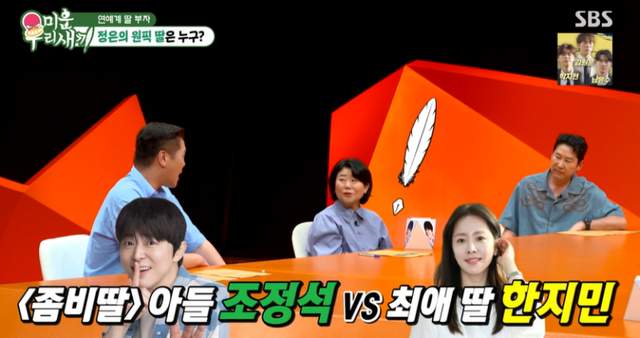 이어 서장훈은 최근 영화 ‘좀비딸’에서 아들로 출연하는 조정석과 한지민 중에는 누굴 선택하겠냐고 잔인한 질문을 이어갔다. 이에 이정은은 “이거 되게 애매하다”고 난처해 하면서도 “저는 어차피 지나간 과거는 오래생각할 필요없다. 그래서 최근에 한 조정석 씨를 택하겠다. 지민아 미안해”라고 말해 웃음을 자아냈다.