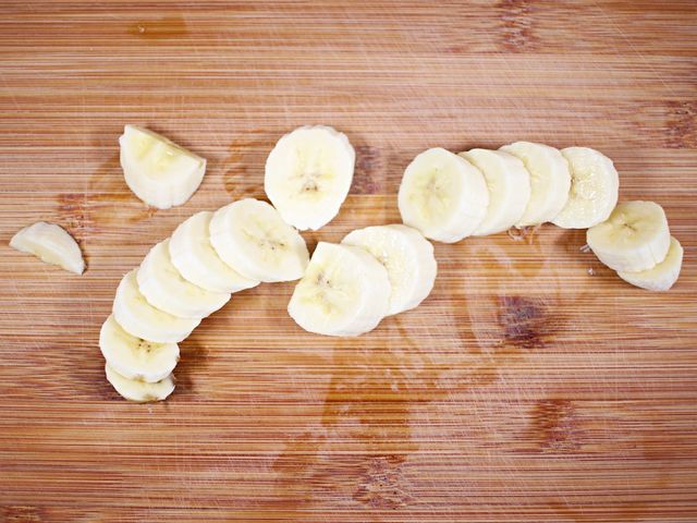바나나는 껍질을 벗기고 얇게 썰어주세요.