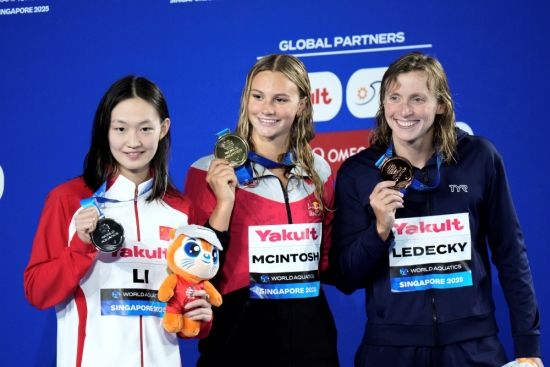 한편, 같은 날 열린 여자 자유형 400m 결승에선 2006년생 서머 매킨토시(캐나다)가 금메달을 목에 걸었다. 3분56초26의 기록을 찍으면서 8명 중에서 가장 먼저 레이스를 마무리했다. 뒤이어 들어온 리빙제(중국)가 3분58초21로 은메달을 얻었고, '파리올림픽 2관왕' 케이티 레데키(미국)가 3분58초49의 기록으로 동메달을 따냈다.