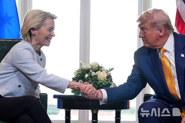 27일(현지 시간) 월스트리트저널, 폴리티코 등에 따르면 트럼프 대통령은 스코틀랜드 턴베리 소재 골프장에서 우르줄라 폰데어라이엔 EU 집행위원장과 1시간가량 회담한 후 기자들에게 "이번 합의는 단결과 우정을 가져올 것"이라며 "지금까지 이룬 합의 중 가장 큰 규모"라고 말했다.