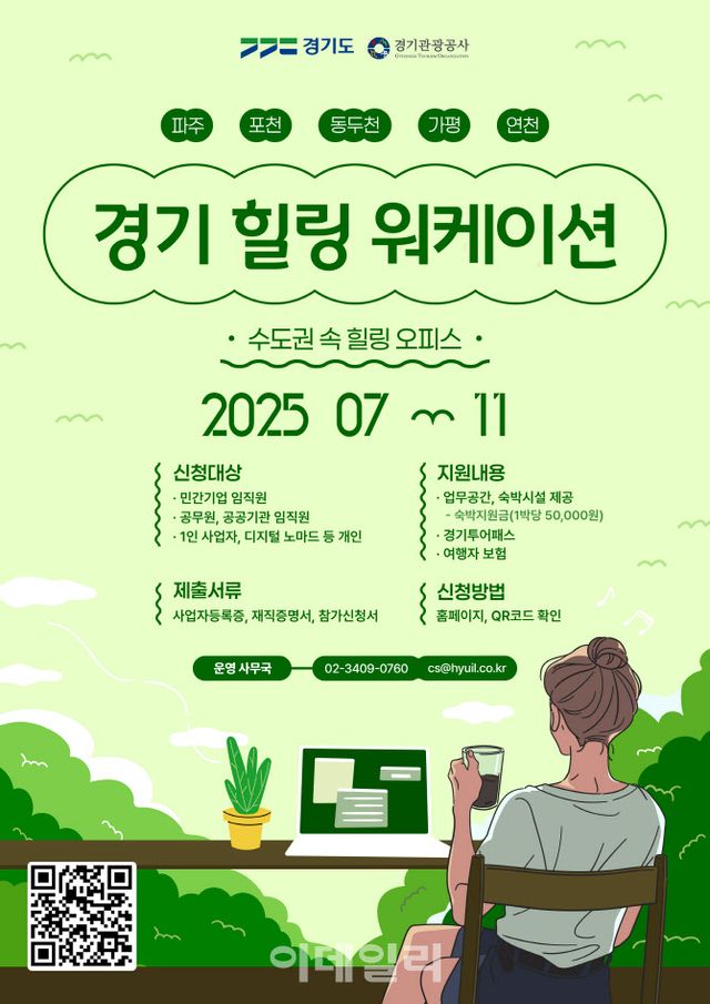 장향정 경기도 관광산업과장은 “워케이션을 경험하려면 근로자가 먼 지역으로 이동해야 하는 경우가 많은데 가까운 경기도에서 새로운 일상을 경험할 기회를 제공하고자 한다”며 “워케이션을 통해 업무 효율을 높이고 경기북부의 다양한 매력도 느낄 수 있기를 기대하며 많은 관심을 부탁한다”고 말했다.