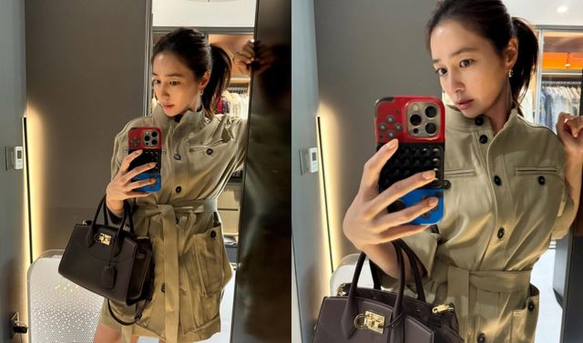 최근 이민정은 자신의 SNS를 통해 여러 장의 셀카를 공개했다. 공개된 사진 속 이민정은 베이지 컬러의 벨트 셔츠 원피스를 입고 거울 앞에서 포즈를 취하고 있다. 군더더기 없이 깔끔한 스타일에 블랙 핸드백을 매치해 고급스러움을 더했으며, 깔끔하게 묶은 포니테일 헤어스타일이 단정하면서도 세련된 매력을 자아낸다.
