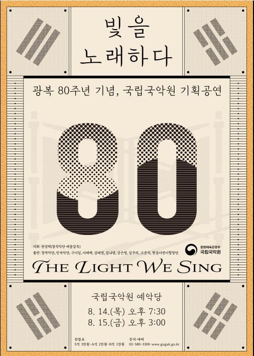 국립국악원(원장 직무대리: 강대금)은 광복 80주년을 맞아 8월 14일~15일 양 일간 국립국악원 예악당에서 기획공연 ‘'빛을 노래하다'’를 개최한다.