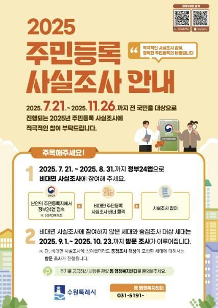 [와이뉴스] 수원시는 오는 11월 26일까지 모든 시민을 대상으로 ‘2025년 주민등록 사실조사’를 한다.
