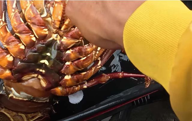 까망형은 영상에서 낚싯대를 거치대에 올려놓고 기다리던 중 강한 입질을 감지했다. 처음에는 밑걸림이나 문어로 착각했지만 힘겹게 끌어올린 결과 놀랍게도 닭새우였다. 그는 “와, 이거 거짓말 아니지?”라고 말하며 흥분을 감추지 못했다. 잡힌 닭새우는 약 1.5kg으로 추정됐다. 까망형은 잡은 닭새우를 집으로 가져가 버터갈릭 오븐구이로 조리해 가족과 함께 맛있게 먹었다.