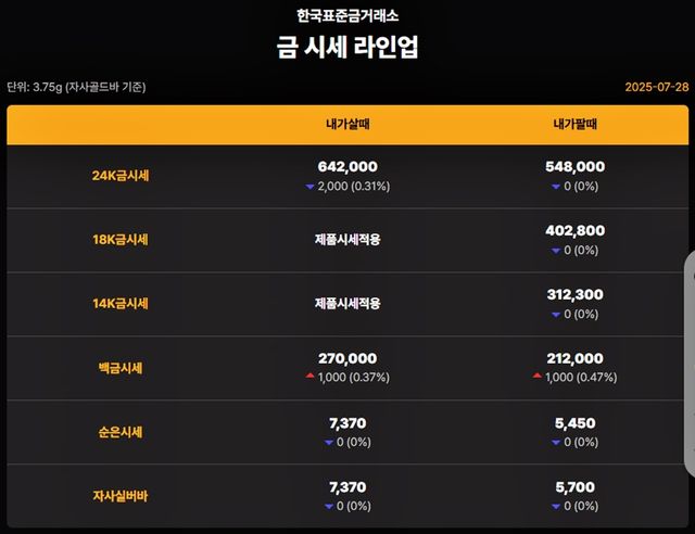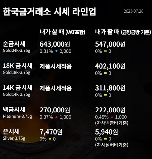 순금(24K) : 매입가 64만 3000원 / 매도가 54만 7000원