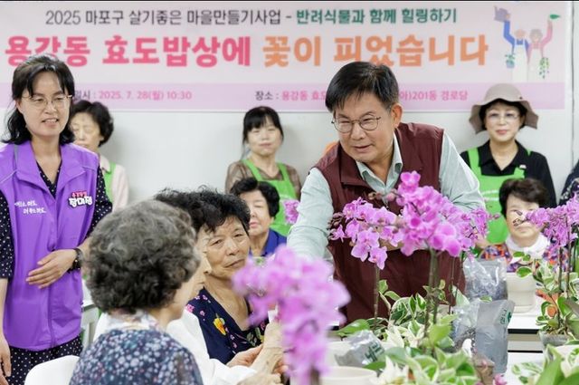 [파이낸셜경제=김영란 기자] 박강수 마포구청장은 7월 28일 오전 10시 30분, 용강동 효도밥상 4호점(태영아파트 201동 경로당)에서 열린 반려 식물 심기 활동에 참석해 어르신들과 함께 시간을 보냈다.