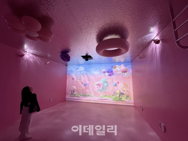 ‘수영장’ 공간에서는 한교동 등 캐릭터들과 함께 물속을 노니는 듯한 체험이 가능하다. 디지털로 구현된 수면과 물결은 마치 실제 수영장 속에 들어간 듯한 묘한 기분을 선사한다.
