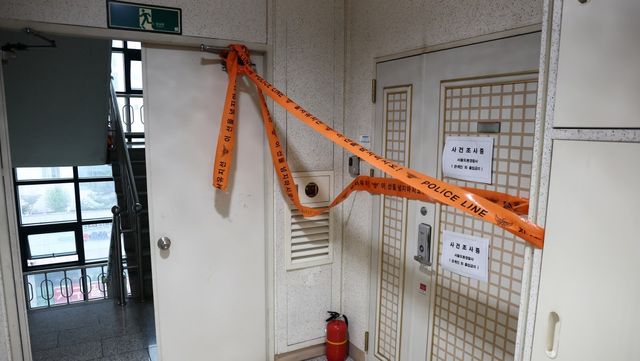 지난 21일 인천에서 사제 총기를 발사해 가족을 숨지게 한 피의자의 주거지에 폴리스 라인이 설치돼 있다. / 연합뉴스