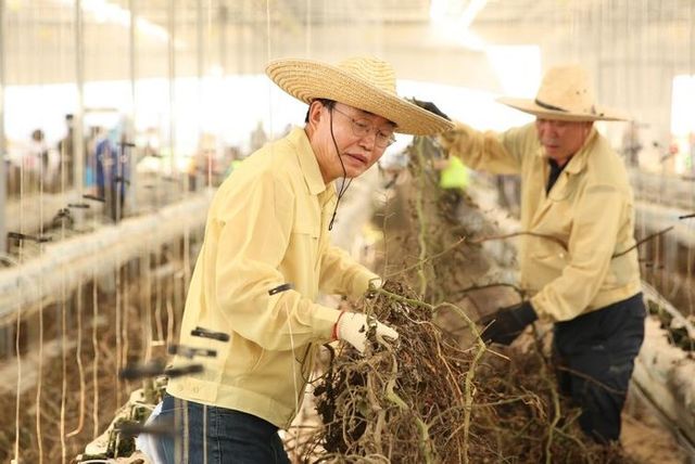 | ▲ 휴일을 반납한 윤병태 나주시장이 시설하우스 농가에서 수해 복구에 열중하고 있다. |