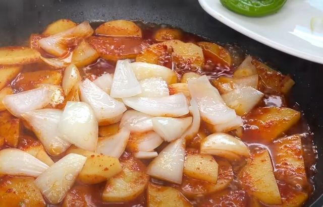 양념을 너무 일찍 넣으면 감자가 부드러워지면서 부서질 수 있으므로, 어느 정도 감자가 익은 뒤에 매콤한 양념을 넣고 볶는 것이 요령이다.