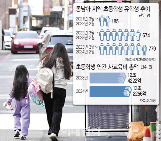 동남아 조기유학을 결정하는 학부모는 이들만이 아니다. 한국교육개발원 소속 국가교육통계센터에 따르면 2023년 3월부터 지난해 2월 말까지 동남아 지역으로 유학을 떠난 초등학생은 779명으로 나타났다. 이 기간 초등학생 유학생 중 24.3%에 해당한다. 동남아 지역으로 떠나는 초등학생 유학생들은 꾸준히 늘고 있다. 2021년 3월~2022년 2월에는 185명이었으나 이듬해 조사기간(2022년 3월~2023년 2월)에는 674명으로 증가했다. 3년 연속 상승세다.