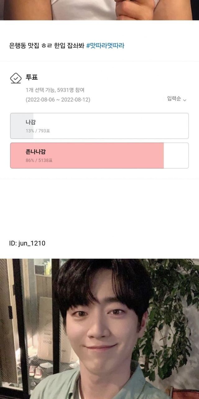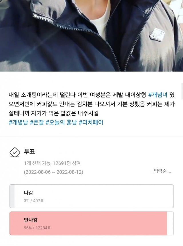 이렇게 생긴 남자들 올린 인스타 글 내용 보고 정하는 거