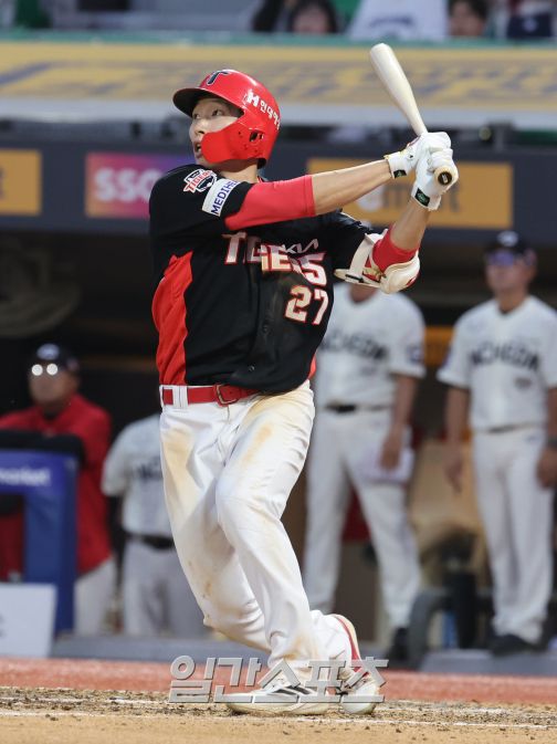 올해 주전 야수들의 부상이 반복된 KIA는 퓨처스(2군)리그 선수를 여러 테스트 하며 기회를 줬다. 이 과정에서 김호령(33) 오선우(29) 고종욱(36) 등이 1군 엔트리를 꿰찼다. 특히 만년 2군 자원이었던 김호령이 타격에 눈을 뜨면서 최원준을 대체할 주전 중견수로 떠올랐다. 이미 데뷔 첫 두 자릿수 홈런을 달성한 오선우는 1루수 출전 비율이 높지만, 코너 외야 수비가 가능한 멀티 자원. 2군 통산 홈런이 67개인 김석환까지 고려하면 외야는 말 그대로 '포화 상태'에 가깝다.