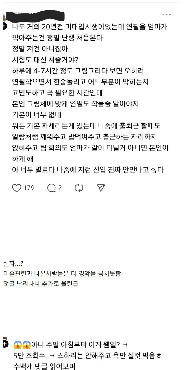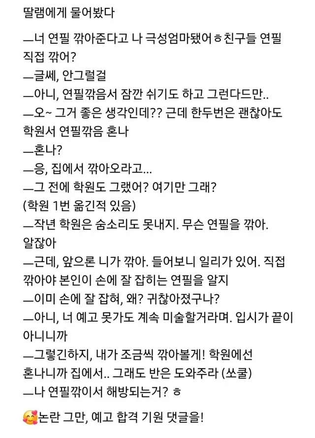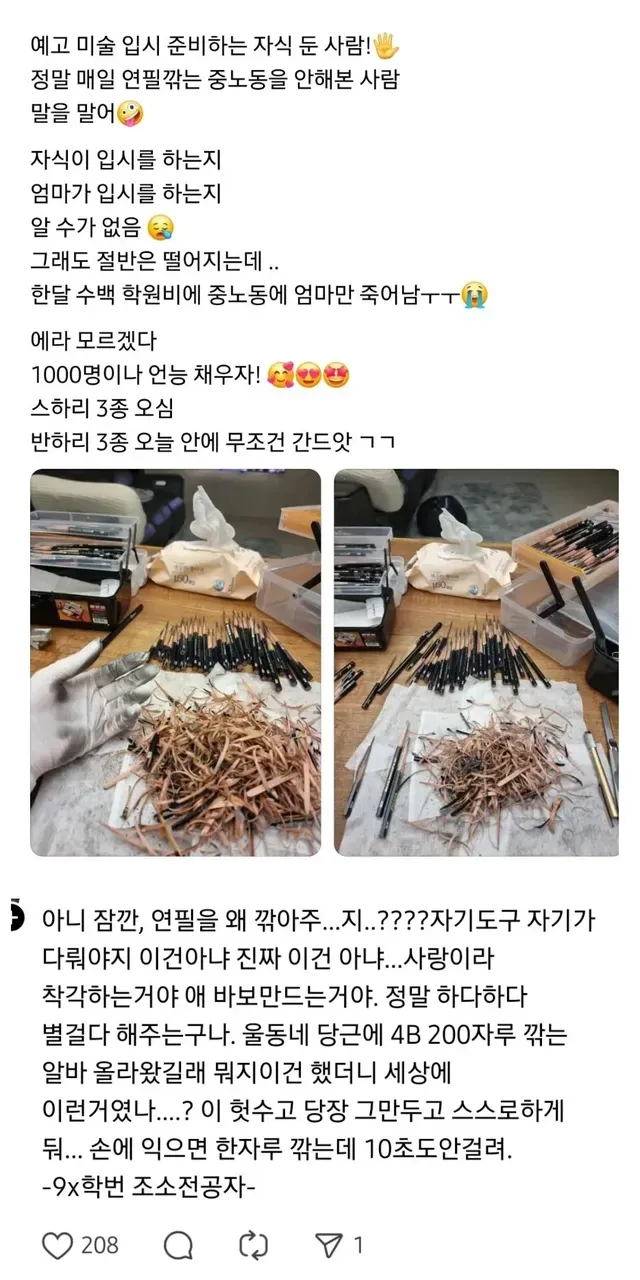 요즘 미대입시 준비할땐 엄마가 연필 깍아줌,,
