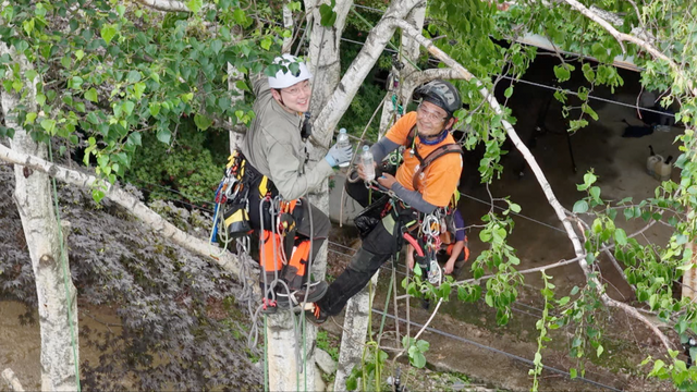 이어서 작업 의뢰를 받아 처음 현장에 투입된 모습이 담겼다. 나뭇가지가 전깃줄 위에 아슬아슬하게 걸려 있어, 안전을 위해 신속한 정리를 필요한 상황. 섬세한 판단과 고난도 기술이 요구되는 만큼, 아보리스트의 역할이 필수적이었다. 아보리스트의 일당은 경력에 따라 55만 원까지 오르기도 하지만, 국내에서는 아직 의뢰가 많지 않아 전업으로 삼기엔 쉽지 않다.