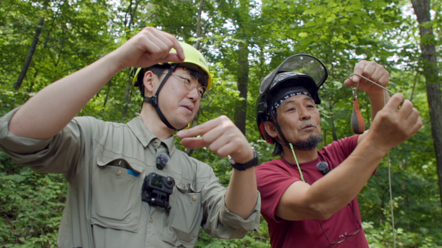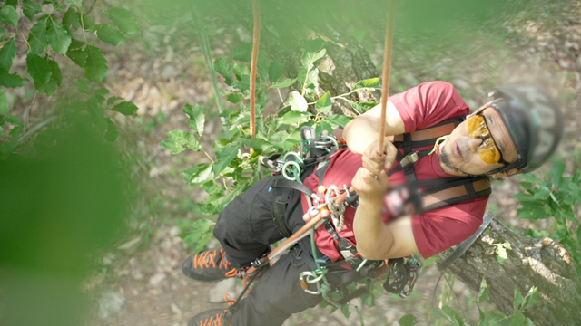 정 PD가 가장 먼저 배운 것은 로프 매듭법이었다. 나무 위에서 일하는 직업인 만큼, 아보리스트라면 로프를 자유자재로 다룰 수 있어야 한다. 인류의 역사와 함께 발전해 왔다는 로프는 매듭법이 무려 4천 가지에 이른다. 가장 강력한 매듭 중 하나인 ‘EBS(End Bound Single Bowline)’까지 익히며, 명실상부 ‘이름값 하는’ EBS PD로 거듭났다.